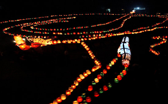 上青鄉(xiāng)享有“中國(guó)民間文化藝術(shù)之鄉(xiāng)”的美譽(yù),流傳于上青鄉(xiāng)的橋燈是一種古老的漢族民俗文化活動(dòng),始于唐朝開(kāi)元年間,至今已有1200余年。上青橋燈是用很多張長(zhǎng)板凳連接而成的龍燈,前有龍頭,后有龍尾,中間是一節(jié)一節(jié)的長(zhǎng)條板凳,每張板凳的凳面上安有4個(gè)圓桶形燈籠,每個(gè)燈籠插一至二根蠟燭。板凳長(zhǎng)約1.5米,寬0.2米,兩頭各鑿一個(gè)方洞,用安有托板的木棍前后拴連,既能節(jié)節(jié)相連,每節(jié)又可靈活轉(zhuǎn)動(dòng)。橋燈由每家出一張板凳,暗喻人丁興旺之意。