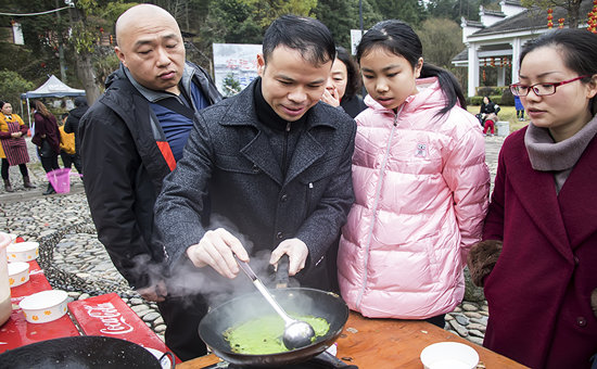在親子娛樂體驗(yàn)中,全家老小齊上陣,多人競走、拔河比賽、踩高蹺、平衡木...好一個(gè)樂活的歡喜年;在放生祈福體驗(yàn)中,泰寧丹霞寺妙祥法師現(xiàn)場誦經(jīng),跟隨習(xí)大大腳步,每人放生一條鯉魚到上清溪,小魚承載著放生者的善念,傳遞保護(hù)自然、愛護(hù)生命的夢想...好一個(gè)生態(tài)的吉祥年;在小吃制作體驗(yàn)中,大家擼起袖子炒花生、烹制碧玉卷、磨豆?jié){...好一個(gè)活色生香的美味年;在非遺民俗展示中,游客相聚“眾藝臺(tái)”,觀賞上青橋燈和本地龍燈齊鬧新春,年味十足,好一個(gè)熱鬧的傳統(tǒng)年;最后,重頭戲千人土豬豆腐宴開席啦!隨著本地民俗菜肴端上桌,賓客們吃著土豬肉和正宗游漿豆腐,欣賞著戲臺(tái)上精彩的歌舞表演,一家老小其樂融融,好一個(gè)祥和的好運(yùn)年!