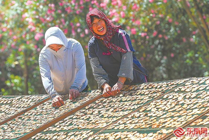 在平潭,厚殼貽貝盛產(chǎn)于蘇平片區(qū)榕山村、白沙村、白勝村一帶,其周邊海域潮流變化快、流速高,為貽貝營造了絕佳的天然養(yǎng)殖環(huán)境,因而這里出產(chǎn)的貽貝頗為肥美。“下苗后,貽貝要過兩年半至三年的時間才能成熟,經(jīng)過晾曬就可以制成貽貝干,這一美味咱們當?shù)厝硕冀小伞?。”榕山村養(yǎng)殖戶俞裕棹說,他從事厚殼貽貝養(yǎng)殖以及蝴蝶干制作、銷售已有13年,去年蝴蝶干銷量約5000公斤,總收入約80萬元。
