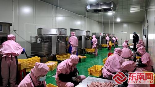 一花獨放不是春,百花齊放香滿園。在光澤北片鄉(xiāng)鎮(zhèn)崇仁鎮(zhèn),崇興食品、崇振食品兩家公司今年正月初八復工以來,也鉚足了干勁,每天近百名員工分工有序,各司其職,在各自的崗位上分割、串肉、包裝、分揀,幾乎每天都在滿負荷生產。