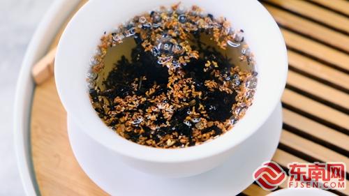 浦城縣“丹桂花茶窨制技藝”是福建花茶窨制類代表之一,在制作過程中將茶葉和丹桂花反復(fù)窖制多次,使茶坯吸收花香,茶湯橙黃亮麗,并有丹桂花點綴其間,香氣優(yōu)雅持久、滋味甜醇。