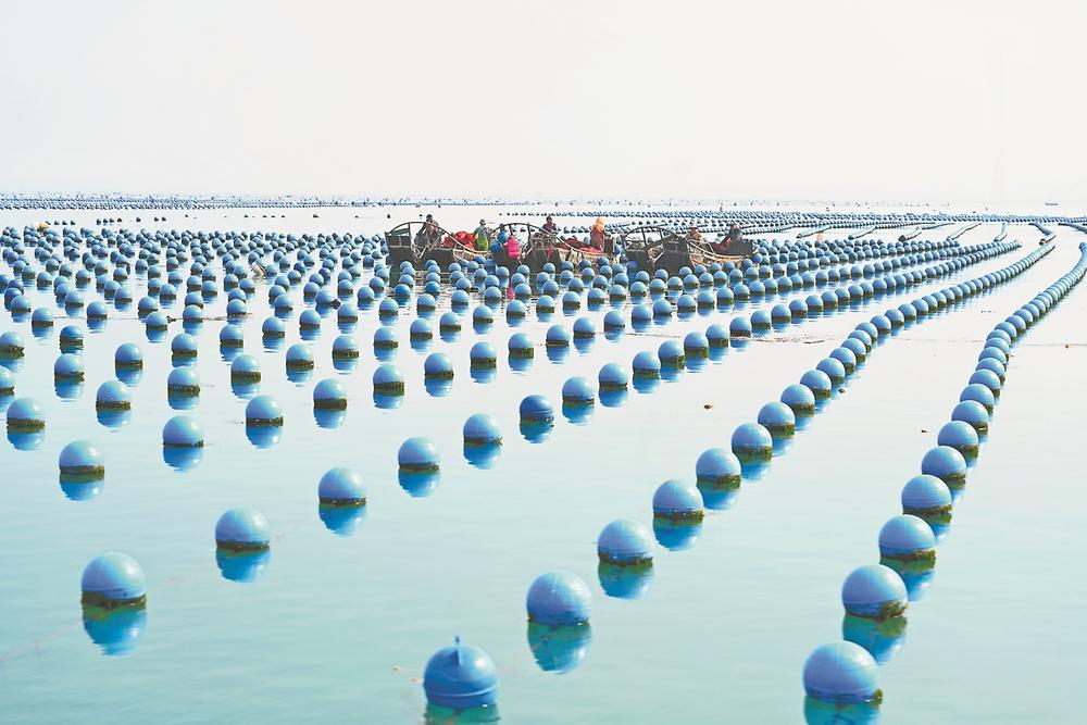 3月12日,漁民在福州市連江縣苔菉鎮(zhèn)附近海域給鮑魚(yú)投喂龍須菜。近日,隨著天氣轉(zhuǎn)暖,海水溫度逐漸升高,“中國(guó)鮑魚(yú)之鄉(xiāng)”連江縣迎來(lái)了鮑魚(yú)投苗的最佳時(shí)節(jié)。漁民搶抓農(nóng)時(shí),將鮑魚(yú)苗投放入海,掀起海上春耕生產(chǎn)熱潮。