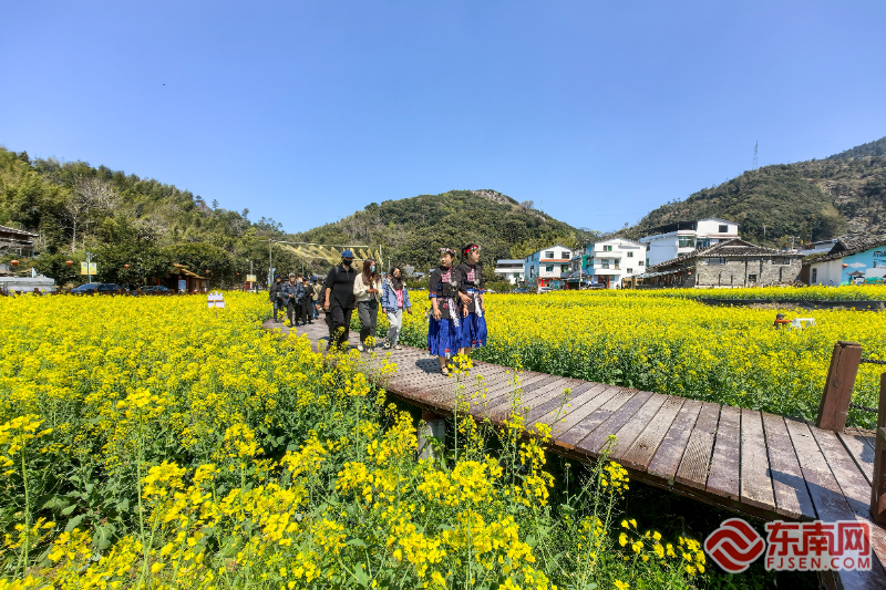游客行走在霞浦縣崇儒畬族鄉(xiāng)霞坪村油菜花田間