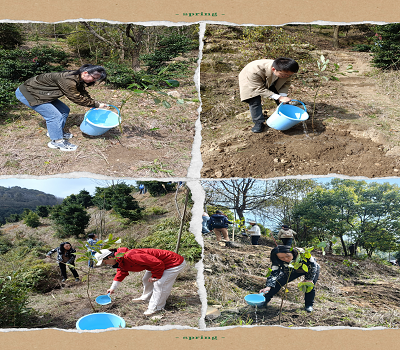 活動現(xiàn)場,大家手持鐵鍬、鋤頭、水桶等工具,分組行動,默契配合,扶苗、培土、踩實、澆水等程序一氣呵成。新栽下的櫻花和紅錐樹苗在春風中搖曳生姿,展現(xiàn)出勃勃生機。