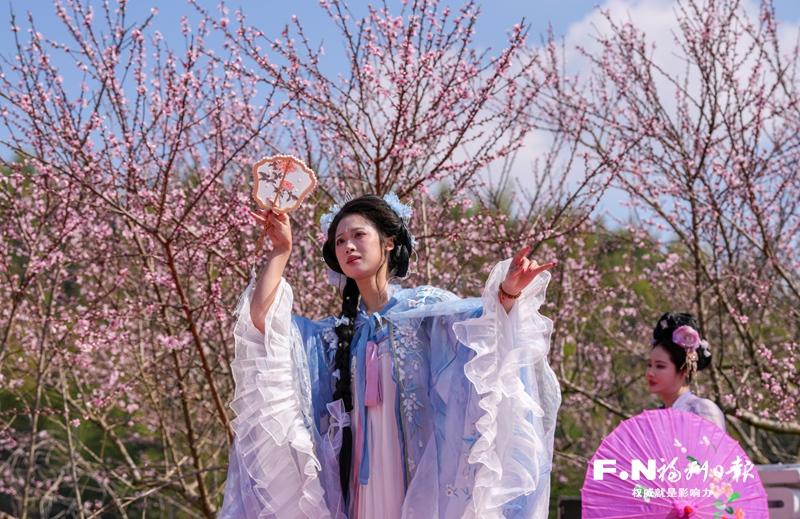 開幕會(huì)當(dāng)天,游人如織,許多市民前來觀賞拍照,沉醉在爛漫春光中?,F(xiàn)場(chǎng)開展了舞蹈表演、古箏演奏、漢服游園等活動(dòng)。一旁,小吃攤生意火爆,村民售賣的蜂蜜李干、蜂蜜青梅、枇杷蜜等永泰特產(chǎn)備受青睞。