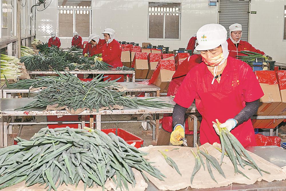 目前正值青蔥收獲旺季,近日,在漳州市漳浦縣一家蔬菜出口企業(yè),工人在將青蔥裝箱。