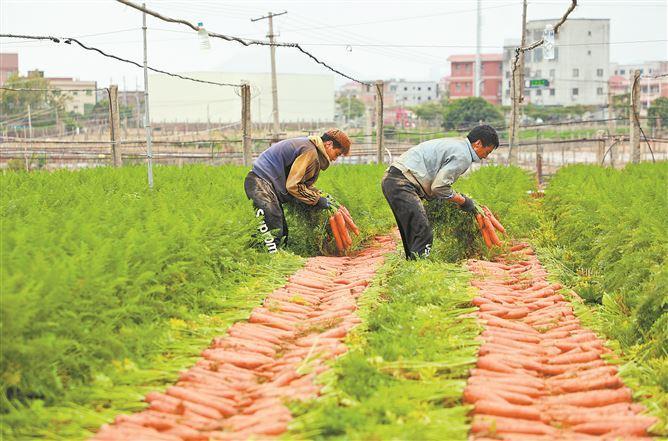 “與往年相比,今年胡蘿卜行情十分可觀,畝產(chǎn)值能達(dá)到1萬元左右?!睆B門呈林農(nóng)業(yè)開發(fā)有限公司負(fù)責(zé)人蔡志龍向記者介紹,每年1月-5月的冬春季,是胡蘿卜收獲的黃金季節(jié),今年農(nóng)歷正月更是迎來了收獲高峰期。下許社區(qū)以種植胡蘿卜等經(jīng)濟(jì)作物聞名,其胡蘿卜不僅在國(guó)內(nèi)市場(chǎng)備受青睞,還大量出口到日韓、東南亞、中東等地。