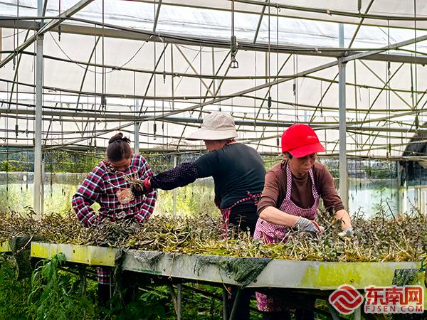 眼下,正值鐵皮石斛的采收季。4月9日,走進(jìn)龍巖市連城縣揭樂鄉(xiāng)丹霞山鐵皮石斛種植專業(yè)合作社的基地,一排排整齊的大棚映入眼簾。經(jīng)過三年的生長,一株株鐵皮石斛莖條茁壯,長勢良好,村民們穿梭在大棚間,忙著采摘、搬運(yùn)、整理鮮條,臉上洋溢著豐收的喜悅。