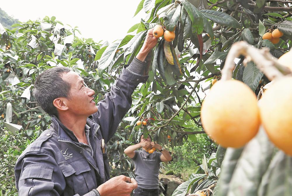 7日,在寧德市霞浦縣牙城鎮(zhèn)渡頭村枇杷園,果農(nóng)正在采摘枇杷,全村今年枇杷喜獲豐收,可實現(xiàn)產(chǎn)值1000多萬元,每戶果農(nóng)可增收3萬元。