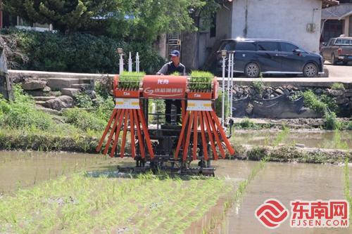 水稻有序拋秧機在田間作業(yè) 浦城縣融媒體中心供圖