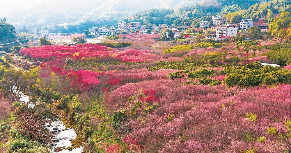 莆田涵江坪盤(pán)村:山櫻盛開(kāi) 與春相約