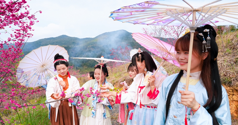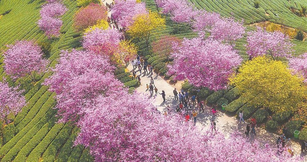 福建永定千株櫻花迎春綻放 賞花期可到4月中...
