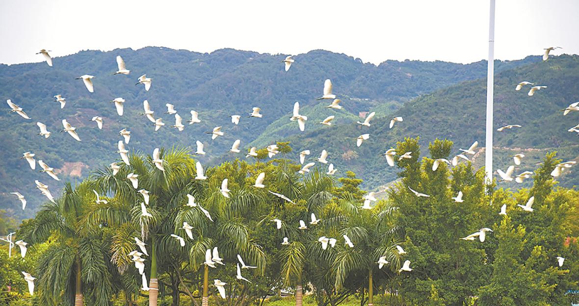 福州:白馬河水清岸綠 引來白鷺“做客”