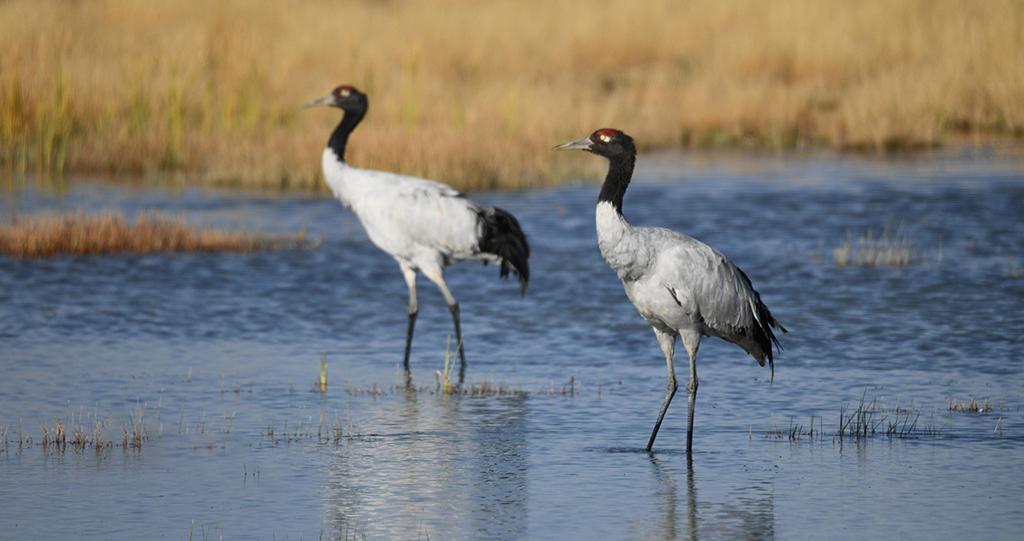 甘肅阿克塞:黑頸鶴漫步蘇干湖濕地