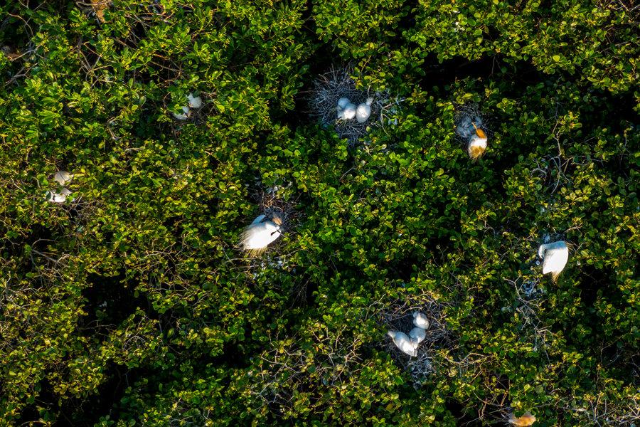 壯美!成群鷺鳥在漳州云霄紅樹林筑巢繁殖