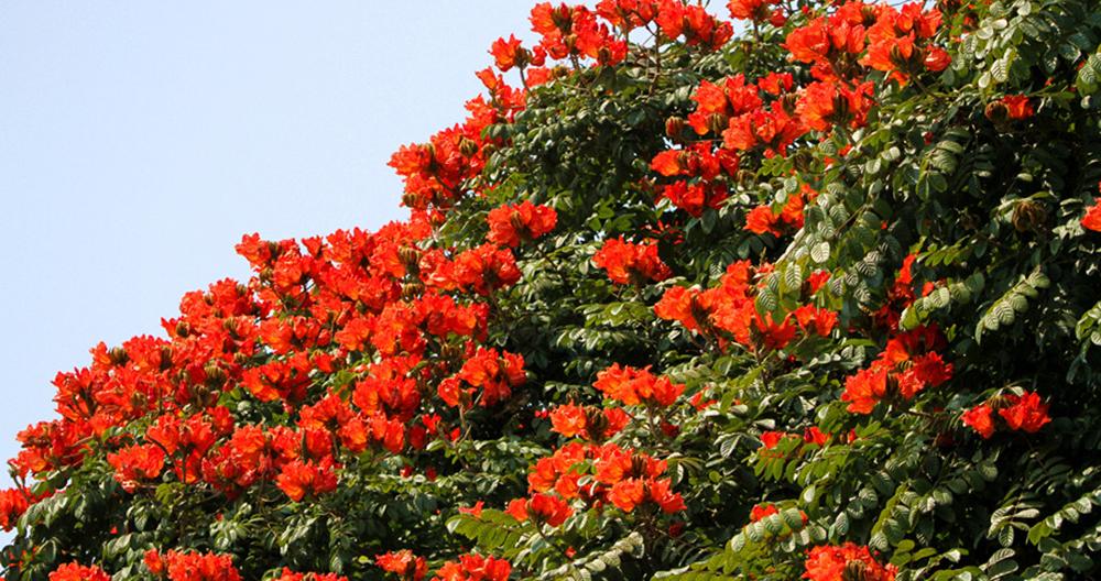 紅花綠樹(shù)鶯亂啼 廈門(mén)街頭火焰木花朵盛放
