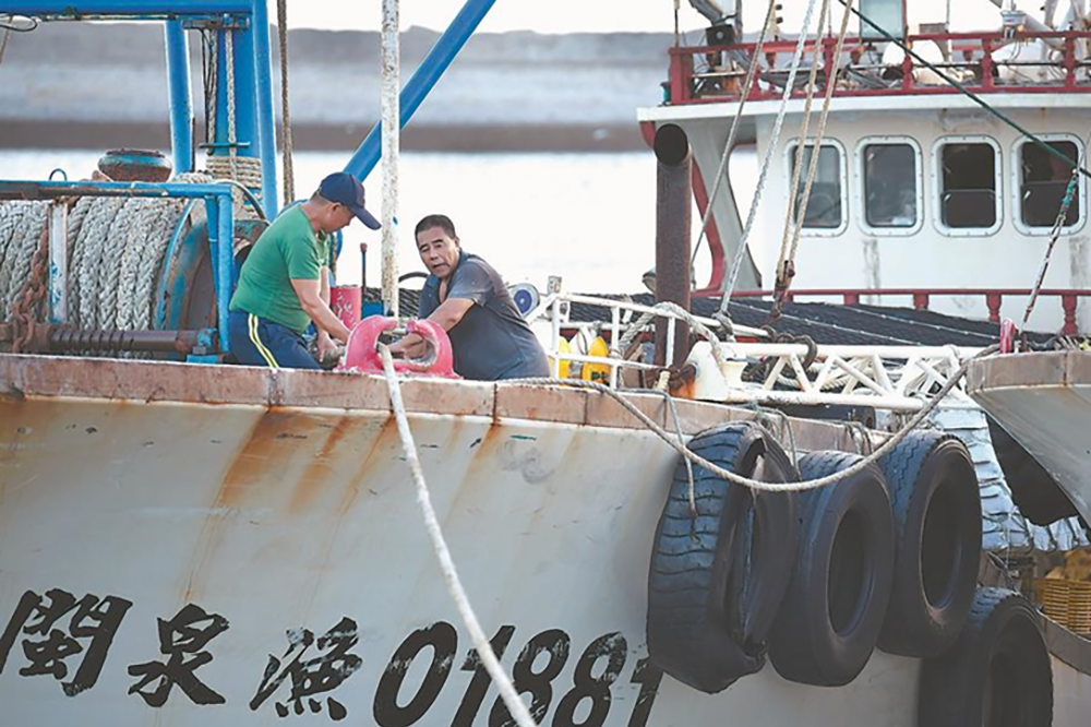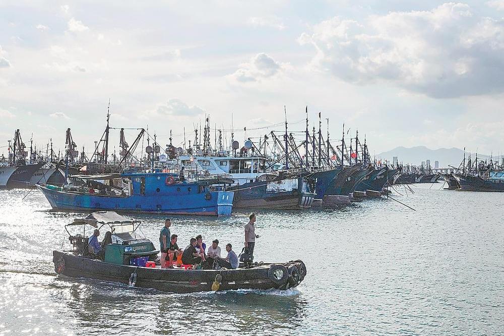 泉州惠安:漁民加固漁船 搶抓臺(tái)風(fēng)登陸前的...
