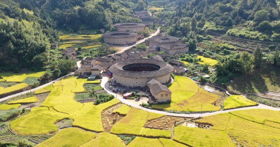 漳州南靖:金黃色稻田扮靚世遺土樓